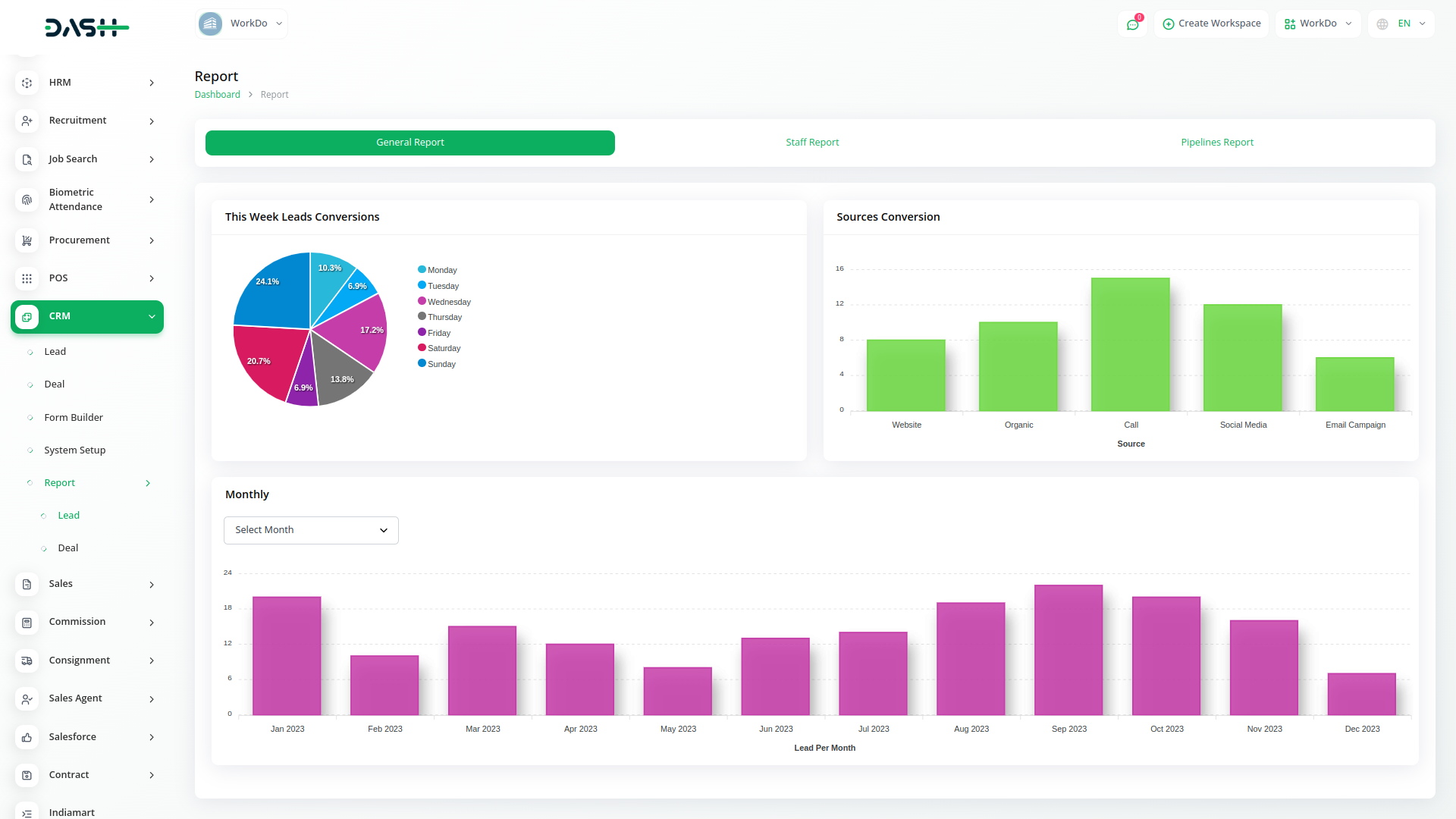 Get an actionable analysis of all your leads, deals, users, invoices, and products - in one interactive dashboard. Create and implement effective business plans, set a maximum number of deals, payment options and do so much more.